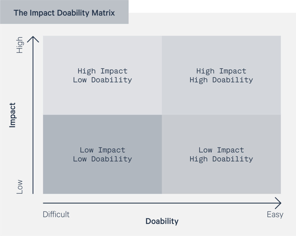 Here’s the impact doability matrix: it’s simple, but powerful.